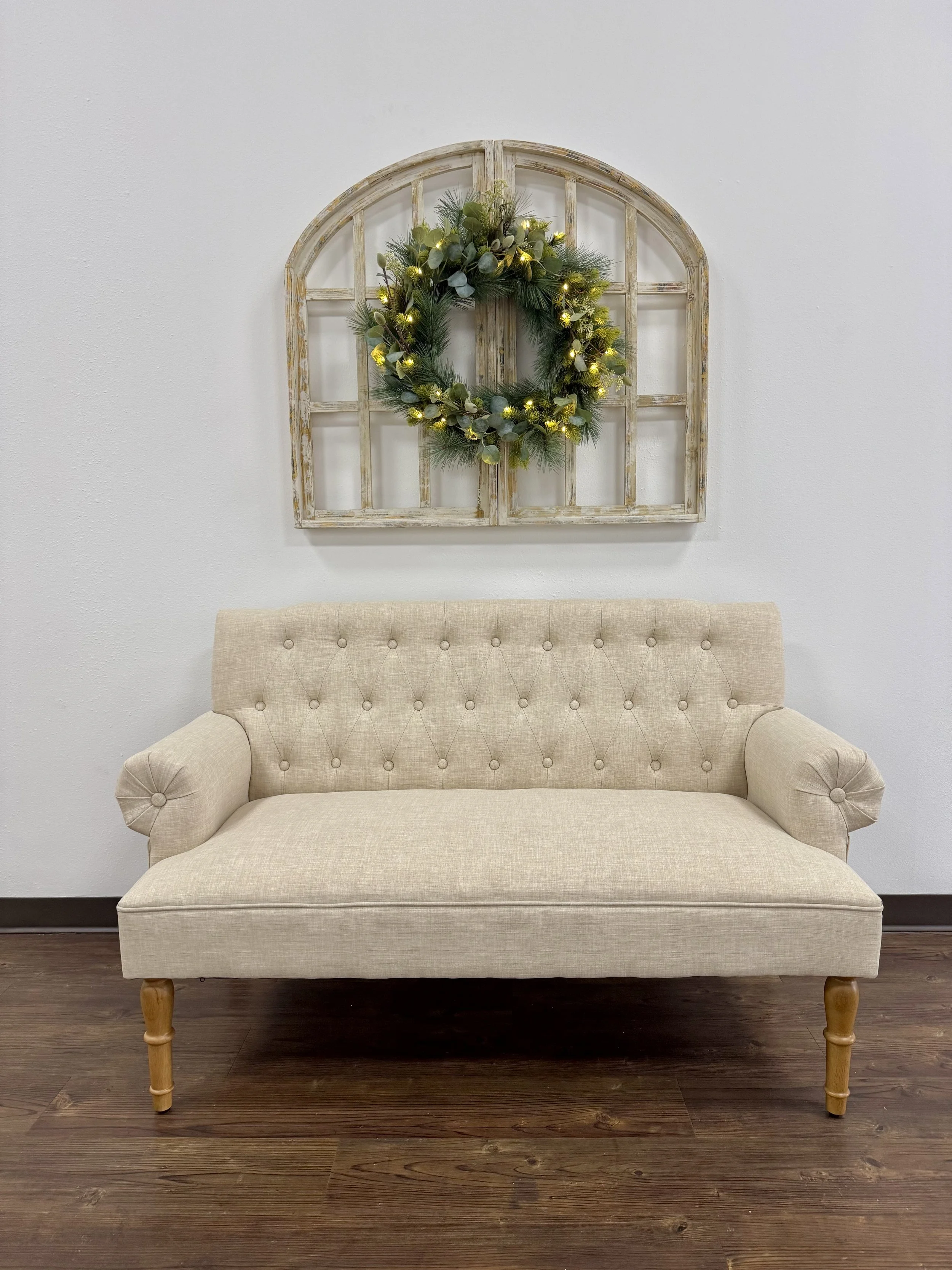 Christmas Minis are perfect for short family or sibling sessions, with the choice of two sets - a simple green backdrop or a minimal neutral / white set with a couch, antique window, and wreath.